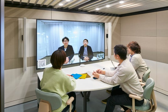 空間デザインとICTを統合して最適化したハイブリッド会議環境は、リアルとリモート双方でのコミュニケーションを円滑にします。