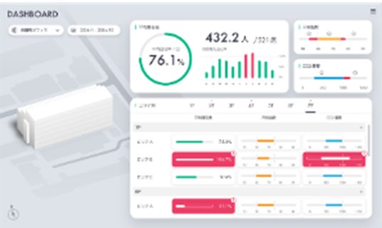 オフィスのみならず、ビル設備側で計測できる温度・不快指数・CO2濃度等、ワーカーの生産性に関わるデータも利用状況分析マップに反映。大きな経営資本である建物とオフィスにおいて、より多角的に課題を発見し、進化させるための経営判断を後押しします。