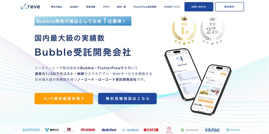 シースリーレーヴ株式会社は、Bubble・FlutterFlowなどのノーコード開発を行う、日本最大級のノーコード受託開発会社です。