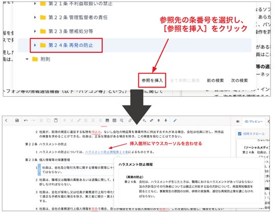 1. 個人差が出やすい規定様式を一定にすることができる「条文構成の自動補正機能」や、「表記ゆれ検知機能」を用いて規程業務の非効率を解消