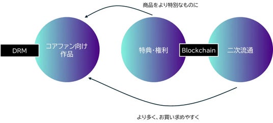 FUNS COLLCETIONは、ファンが好きなクリエイターを作品の購入などを通じて応援する仕組みを、デジタルコンテンツ向けの体験に最適化したデジタルコンテンツ×クラウドファンディングの新たなコンテンツサービスです。クリエイターが安心して自身の作品やそれに関連した特典・権利などをデジタルデータとしてファンへ安全に届けられるようにするために、FUNS COLLECTIONでは不正なデータの改ざんを防ぐブロックチェーン技術と、不正なデータの利用を防止するDRM(Digital Rights Management)技術を採用しています。また、これらの技術はシステムのバックエンドに実装されているため、それらの技術を意識することなく、クリエイターやファンがサービスを利用できるようになっています。