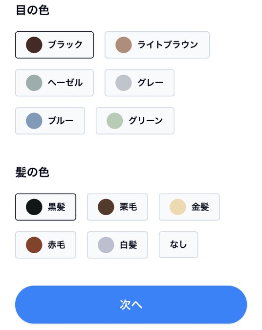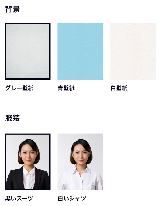 背景色や服装、目や髪の色といった要素を自由にカスタマイズでき、利用者の好みに応じた証明写真を作成できます(カラーコンタクトや金髪の写真素材でも、黒目や黒髪に修正できます)