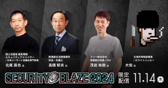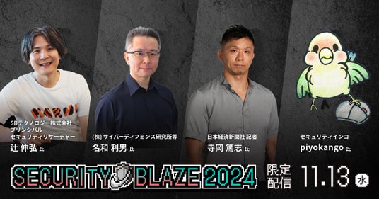 「Security BLAZE2024」は日本を代表するサイバーセキュリティの専門家や企業にお集まりいただき、サイバーセキュリティの最新動向や脅威への対策などを中心にお話いただく、日本最大級のオンラインセキュリティカンファレンス。合計30以上の豪華セッションをすべて無料でご視聴いただけます。
