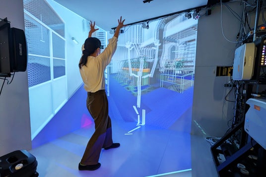 マーカー装着不要のリアルタイムモーションキャプチャシステムを活用したプロジェクションVRを実験展示します。
