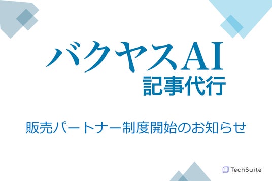 TechSuite株式会社は、運営をする「バクヤスAI 記事代行」のサービス拡大に伴い、販売パートナー制度を正式に開始いたしました。