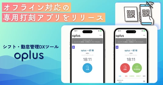 Oplus株式会社(本社:東京都渋谷区、代表取締役:杉原 和樹)が提供する、シフト・勤怠管理DXサービス「oplus(オプラス)」は、非通信環境でのQRコード打刻に対応した「オフライン打刻用アプリ」をリリースいたしました。