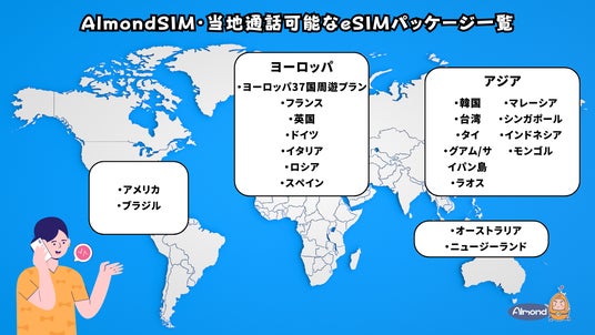 ※現時点、AlmondSIMで発売した現地通話eSIM一覧: