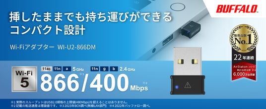 メルコホールディングス(東・名 6676)グループの株式会社バッファロー(本社:愛知県名古屋市、代表取締役社長:牧 寛之)は、パソコンのUSB端子に装着することで、手軽にWi-Fi 5(11ac)に対応したWi-Fi機能を追加できるコンパクトなWi-Fiアダプター「WI-U2-866DM」を2024年12月上旬より順次出荷する予定です。