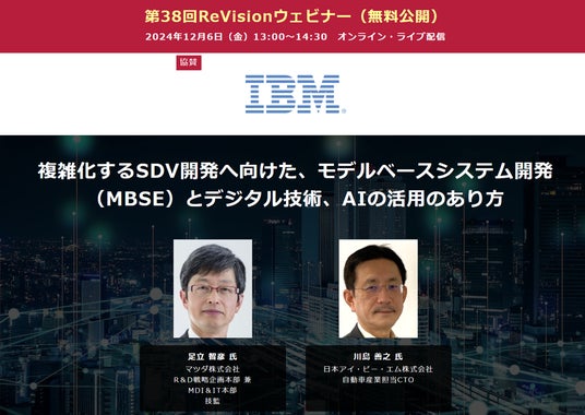 【無料WEBセミナー】 マツダ、IBMから講師を迎え、「SDV開発へ向けたMBSEとデジタル技術、AIの活用のあり方」をテーマにセミナー無料配信 ― 12月6日(金)