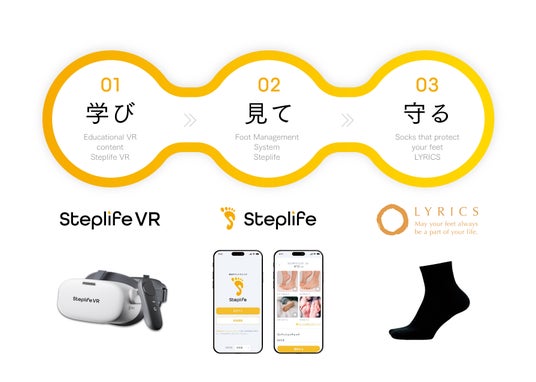 「Steplife VR」はSteplifeの利用に至る手前の段階から糖尿病患者に、末梢神経障害で下肢切断に至る危険があることを知ってもらうための医療機関用糖尿病患者教育用VRコンテンツであり、このサービスを通じて患者自ら早期のフットケアが行われることが期待されています。