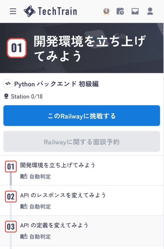 この Railway は、Python 製の Web アプリケーションフレームワークである FastAPI を使用し、WebAPI 開発の基本的な要素を学ぶことができます。