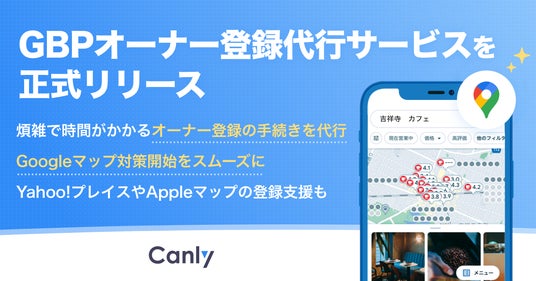Googleビジネスプロフィール(GBP)をはじめとするYahoo!プレイスやApple mapなどの3大地図媒体やHP、SNS、中国媒体といった店舗集客媒体を一元管理するSaaS『カンリー店舗集客(旧:カンリー)』を開発・提供する株式会社カンリー(所在地:東京都品川区、代表取締役:辰巳 衛, 秋山 祐太朗)は、このたび『GBPオーナー登録代行サービス』を正式にリリースいたしました。本サービスにより、店舗運営者はGBPのオーナー登録を工数をかけずに進めることができ、GBPに掲載される情報の管理・運用ができるようになります。
