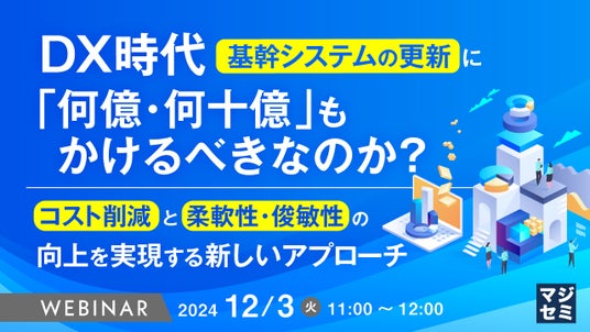 マジセミ株式会社は『DX時代、基幹システムの更新に「何億・何十億」もかけるべきなのか?』というテーマのウェビナーを開催します。