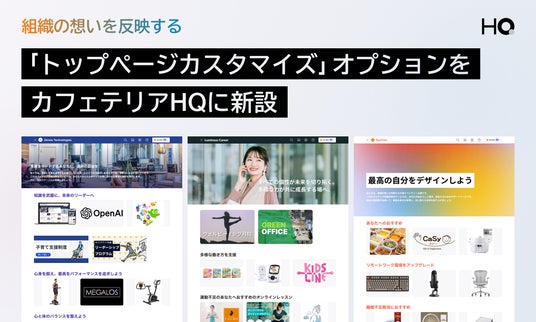 「福利厚生をコストから投資へ」をビジョンに掲げる株式会社HQ(読み:エイチキュー、本社:東京都港区、代表取締役:坂本祥二)は、次世代福利厚生プラットフォーム「カフェテリアHQ」に、「トップページカスタマイズ」オプションを新設しました。企業ロゴや、企業から社員に向けたメッセージを掲載するカスタマイズによって、福利厚生にも組織の想いを強く反映させることが可能になりました。