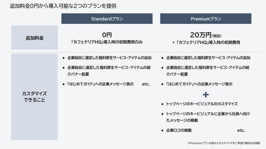 ・ Standardプラン:企業独自に選定した福利厚生サービス・アイテムの追加などは追加料金0円で導入可能