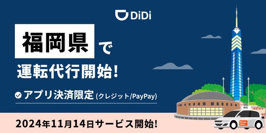 DiDiモビリティジャパン株式会社(本社:東京都港区、代表取締役社長:和久山 大輔、以下:ディディ)は、タクシー配車サービスを提供している福岡エリアにおいて、2024年11月14日(木)より、ディディアプリ上での運転代行配車サービスを開始します。