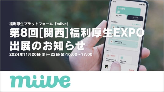 VISAカードとアプリを活用したポイント型の福利厚生プラットフォーム「miive(ミーブ)」を提供する株式会社miive(本社:東京都渋谷区、代表取締役CEO:栗田 廉)は、2024年11月20日(水)から22日(金)までインテックス大阪にて開催される「第8回 関西 福利厚生EXPO」に出展することをお知らせいたします。