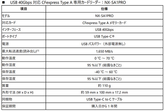 CFexpress(TM) 4.0 Type Aメモリーカード「NX-A2SEシリーズ」およびUSB 40Gbps対応CFexpress Type A専用カードリーダー「NX-SA1PRO」発売のお知らせ