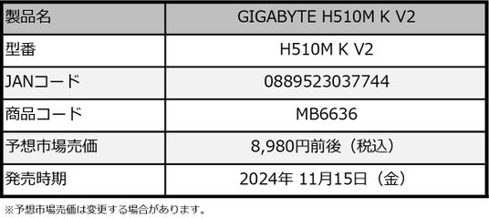 ●製品詳細 https://newx-corp.jp/product/gigabyte-h510m-k-v2/
