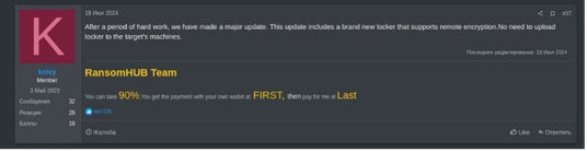 図2 ダークウェブの掲示板に掲載されたRansomHubのリモート暗号化機能のリリース