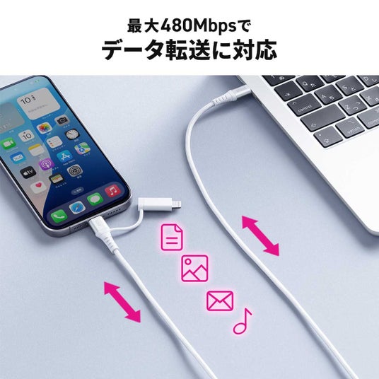 このケーブルは、機器の充電だけではなく、480Mbpsのデータ転送速度に対応。写真や動画の転送も可能で、データ管理が快適に行えます。日常のデジタルライフをより豊かにしてくれるアイテムです。