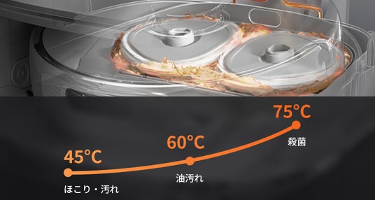 AI制御による温水モップ洗浄機能は、汚れの種類に応じて水温を自動調整します。45℃でホコリや軽い汚れを除去、油分や一定以上の着色汚れを検知した場合60℃でしっかり洗い落とし、仕上げに75℃の高温でモップ周辺の菌の繫殖を一切許しません。洗浄力、モップの製品寿命、エネルギー効率を最大まで高めつつ、モップとベースステーションを常に清潔に保ちます。