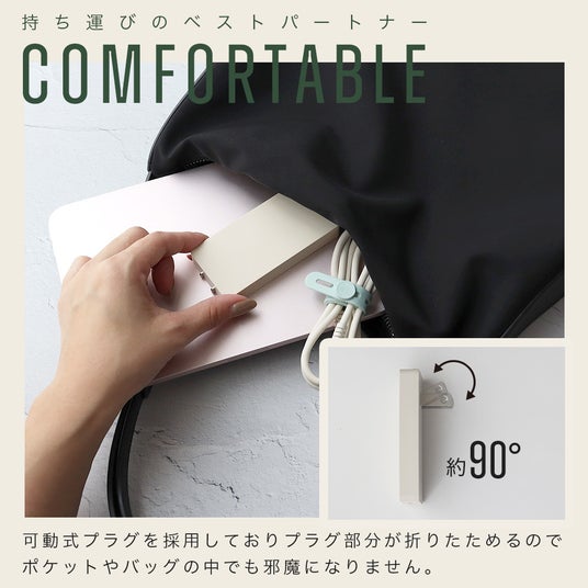 ▼便利な折りたたみ可動式プラグと"極薄12.5mm"でスリムに持ち運び