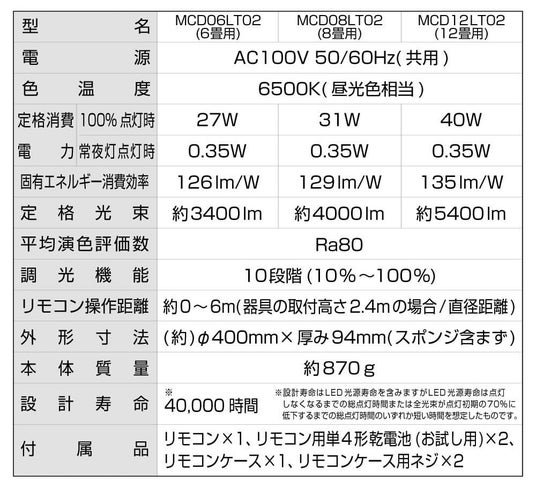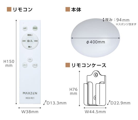 ・調光機能付きLEDシーリングライト(6畳~12畳用):https://maxzen.jp/product/mcd06-08-12lt02/
