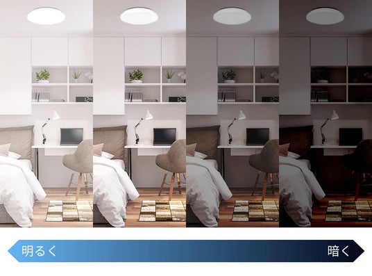 光の強さを10段階で調整することができます。就寝前は光量を減らして暗めに、手元が見えにくいような細かな作業をするときは光量を増やして明るめにするなど、お客様の日々の生活に寄り添った照明に仕上がっております。