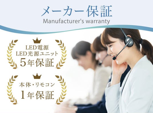 LED電源・光源ユニットは5年間、本体・リモコンは1年間のメーカー保証がついており、安心してお使いいただけます。