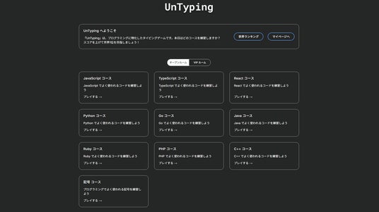 UnTyping は、プログラミングの練習に特化したエンジニア向けのタイピング練習ゲームです。