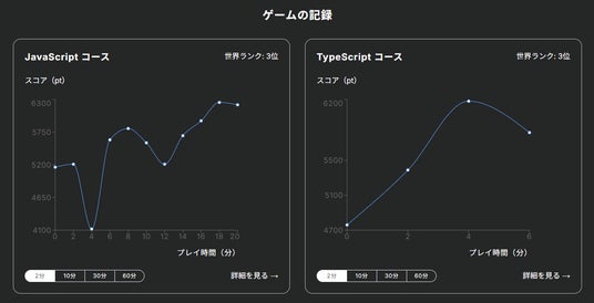 プログラミングタイピングゲーム「UnTyping」は、成長の記録を確認することができます。