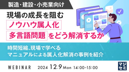 マジセミ株式会社は「【製造・建設・小売業向け】現場の成長を阻む、ノウハウ属人化、多言語問題をどう解消するか」というテーマのウェビナーを開催します。