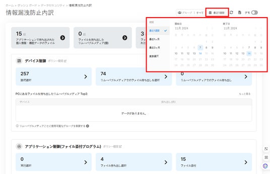 2. 社内PCのセキュリティ情報が要約されたダッシュボードの内容をメールで送信できます。