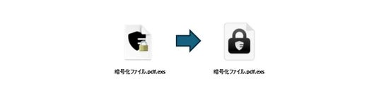 EXOセキュリティにより暗号化されたファイルであることが直感的にわかり、外部共有前に暗号化解除が必要であることが明確に認識できます。