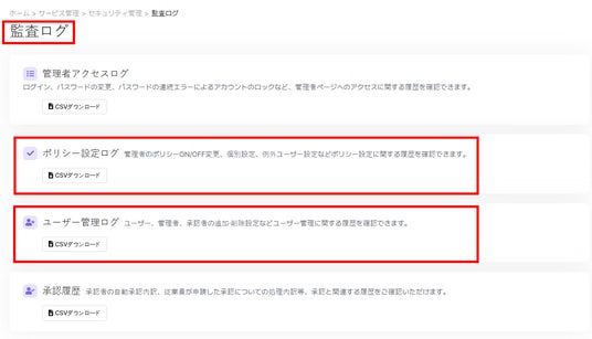 6. 管理者ページへのアクセスと社内PCの安全な利用を確保するため、設定されたセキュリティポリシーをチェックできます。