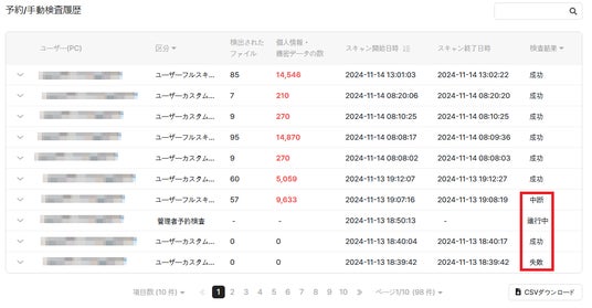 ■個人情報・機密データ検査が終了していなくても進行状況が把握できます。