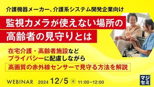 マジセミ株式会社は「介護機器メーカー、介護系システム開発企業向け 監視カメラが使えない場所の高齢者の見守りとは」というテーマのウェビナーを開催します。