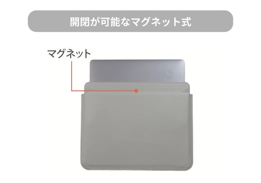 4.開閉が簡単なマグネット式マグネット式で素早く開閉できるため、パソコンをサッと取り出して使用できます。スムーズに出し入れできるので、作業効率のUPにも◯
