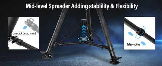 中間レベルのスプレッダーを追加すると、サポート システム全体を安定させることができます。スプレッダーの長さを延長または短縮して、ロック ノブで脚の角度を微調整できます。