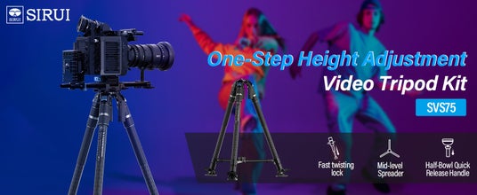 従来のノブ/フリップレッグロックセットアップ三脚と比較して、SIRUISVS75はワンステップの高さ調整設計です。つまり、各脚のツイストロックを1つ引くだけで三脚をセットアップしてロックできます。このワンステップの高さ調整設計により、重い機材でも高さを上下に素早く柔軟に調整できるため、素早く移動する撮影に適しています。