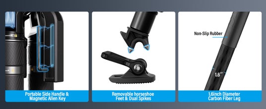 馬蹄脚付きの三脚は平らな地面でもうまく機能し、三脚の安定性を高めます。制限位置設計により接触面積が拡大した馬蹄脚は、滑りをさらに防ぎ、三脚を安定させます。