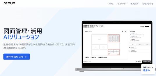 【製造・建設業界向け】図面読み取り~活用を一気通貫で実現する「renue 図面管理・活用AIソリューション」を、成果報酬型共創ファームのrenueが提供開始