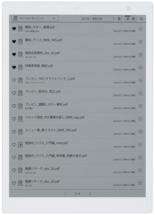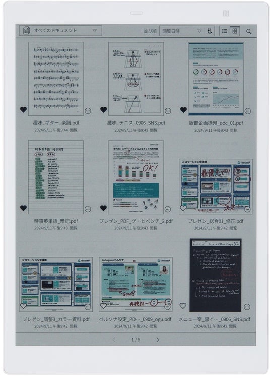 クアデルノは、本物の紙とペンのような「書きやすさ」と「読みやすさ」を実現した、超軽量・薄型の電子ペーパーです。膨大な資料の取り込み・閲覧、手書きメモやPDFへの書き込みなどが行え、アナログの良さとデジタルの利便性を提供します。今回発表するカラーモデルは、従来機の薄さ、軽さ、書き心地はそのままに、表示のカラー対応により視覚的な整理、学習効果の向上、ビジネスや音楽シーンにおける利便性が大幅に向上し、様々なシーンでご活用いただけます。カラー対応に合わせて追加した、「お気に入り登録」機能やBLE(Bluetooth Low Energy)対応により、利用できるBluetoothフットペダルの機種が増え、さらに効率的に情報を扱うことができるようになりました。