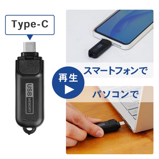 また、今回のボイスレコーダーには当社企画初のUSB端子をTYPE-Cで製作し、PCだけでなくスマホでの録音再生に対応しました。