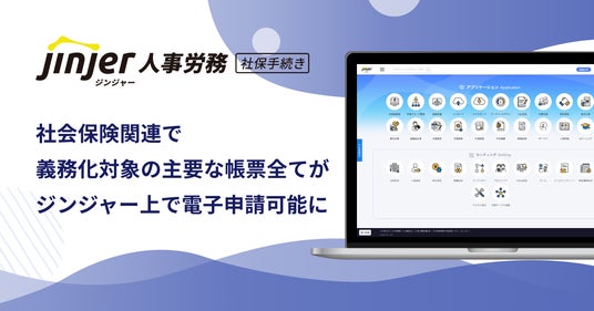 クラウド型人事労務システム「ジンジャー」を提供しているjinjer株式会社(本社:東京都新宿区、代表取締役社長:桑内 孝志)は、「ジンジャー人事労務(社保手続きオプション)」にて、企業の人事担当者が申請する社会保険関連の手続きにおいて、電子申請が義務化されている帳票の中で、利用頻度が少ない増加概算保険料申告書を除く「主要な帳票の全て」が「ジンジャー」上で電子申請ができるようになりました。
