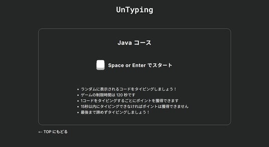 UnTyping - エンジニア向けプログラミングタイピングゲーム(Java コース)