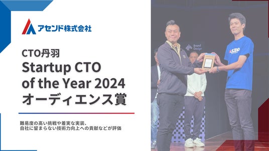 物流の次世代化を実現するアセンド株式会社(本社:東京都新宿区、代表取締役:日下瑞貴、以下「当社」)は、2024年11月19日(火)に開催された、スタートアップの技術的挑戦を牽引する優れたCTOを選出するピッチコンテスト『Startup CTO of the Year 2024』(主催:株式会社ユーザーベース)にて、視聴者・参加者の最も高い支持を得たとする「オーディエンス賞」を受賞したことをお知らせいたします。今後も、「エンジニアリング」の向上を通じ「物流の真価を開き、あらゆる産業を支える。」というミッションに向かって、全社一丸となって取り組んで参ります。ともに課題解決に挑む「プロダクトエンジニア」やビジネスメンバーも絶賛募集中です。