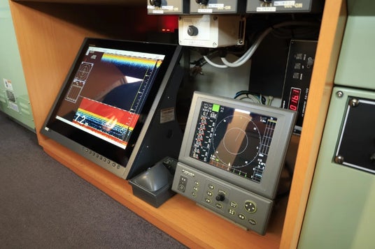 通常は、魚探専用や潮流計専用など電子機器毎に固有のモニターが配置される