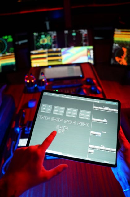 手元のタブレットを操作することで、その時に必要な情報をモニター上に映し出すことが可能